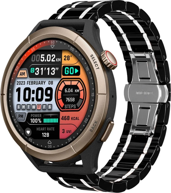 Керамічний ремінець Ceramo для Amazfit Cheetah Round / Cheetah Pro Black White (38444-1E)