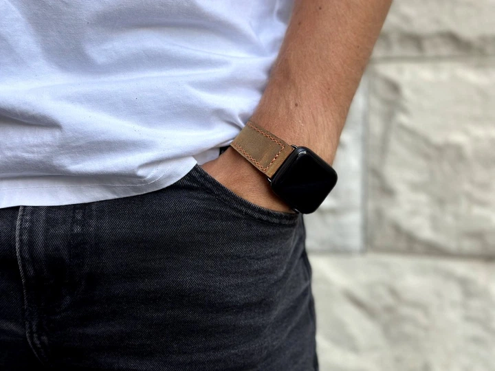 Ремінець WasBorn UA для Apple Watch 38 мм M/L (гірчичний/чорний)
