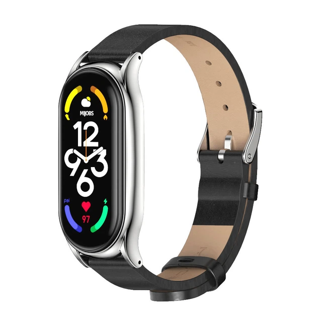 Ремінець шкіряний Mi Jobs для фітнес браслета Xiaomi Mi Band 7 Чорний + срібло (mrk2184)