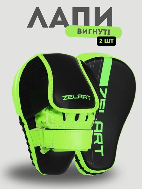 Лапа боксерська вигнута тренувальна PU ZELART BO-9057 боксерська лапа для тренувань лапа для боксу чорно-зелена