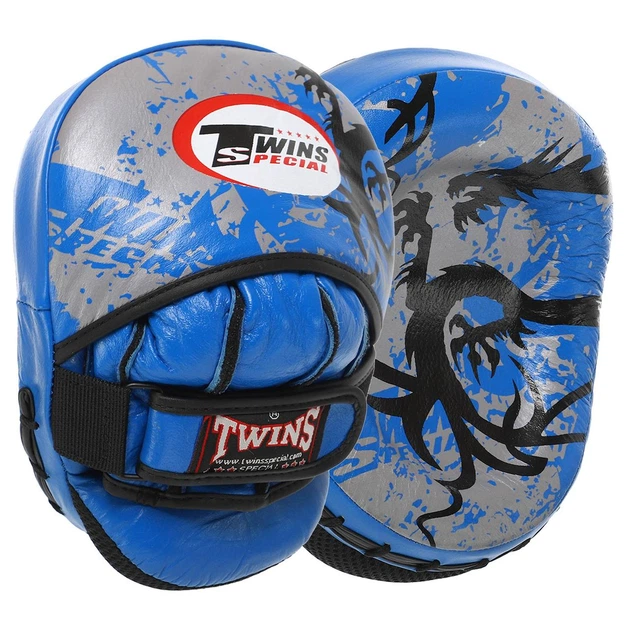 Лапа вигнута шкіряна для боксу та єдиноборств (2шт) Twins TW4 розмір 23x18x6см Blue-Grey