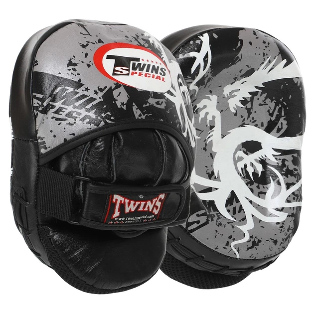 Лапа вигнута шкіряна для боксу та єдиноборств (2шт) Twins TW4 розмір 23x18x6см Black-Grey