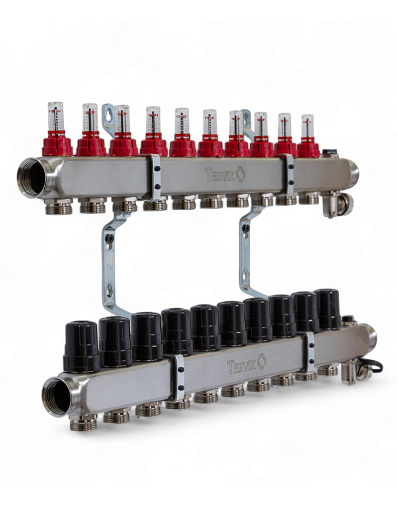 Коллектор TERVIX Pro Line на 10 контуров, с расходомерами, краном Маевского и сливным краном 501210