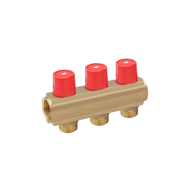 Колектор регулює Karro на 3 виходи 1"х3/4" вентиль, латунний KR-1007B