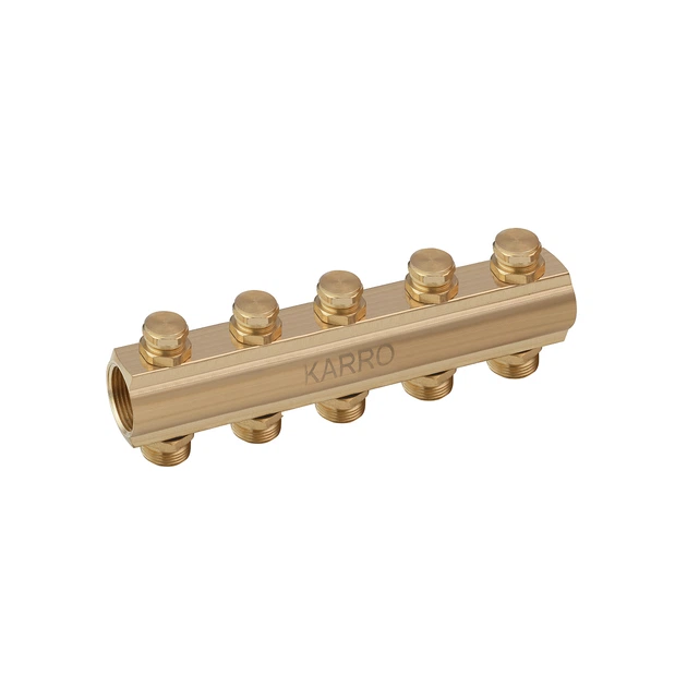 Колектор регулюючий Karro на 5 виходів 1"х3/4" відсікаючий вентиль, латунний KR-1012U