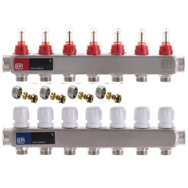 Колектор з євроконусами 7 контурів з витратомірами Europroduct для теплої підлоги.