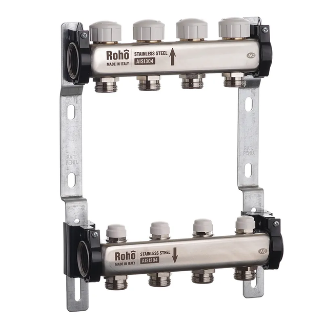 Коллектор с термостатическими и запорными клапанами Roho R805-04 - 1"х 4 вых. (RO0058)