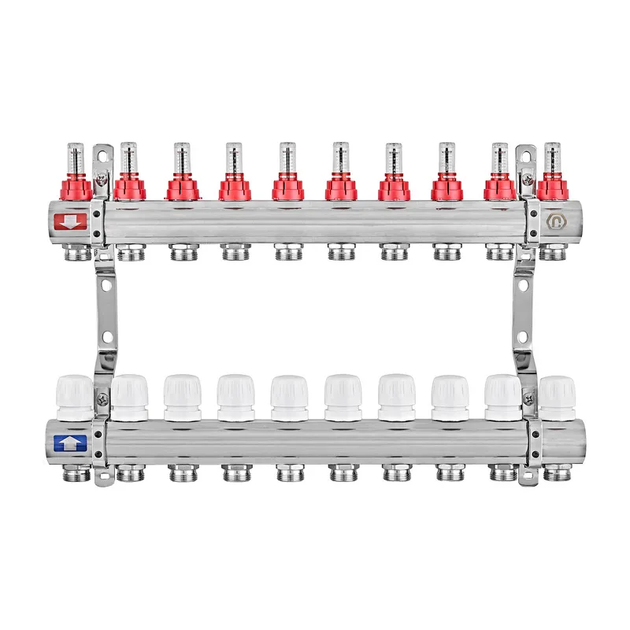 Колекторний блок із витратомірами EUROPRODUCT EP.B3110-10-1”x10 (корп. латунь) (EP6198)