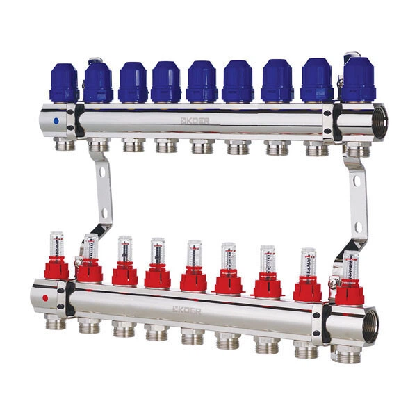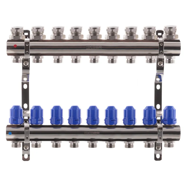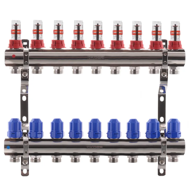 Колектор Koer 9 контурів з витратомірами, для теплої підлоги.
