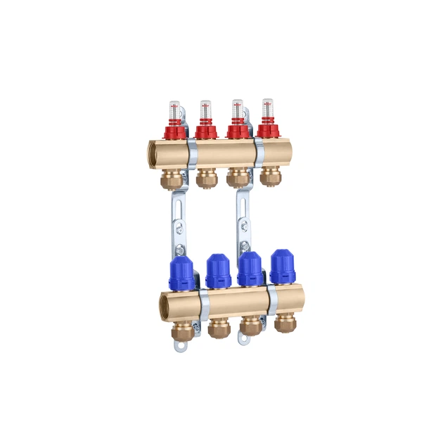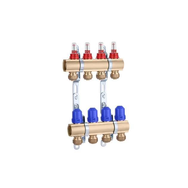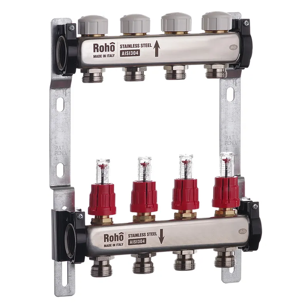 Колектор з витратоміром та термостатичними клапанами Roho R804-04 - 1"х 4 вих. [RO0036]