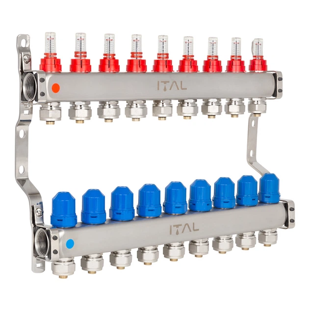 Колектор для теплої підлоги ITAL 9 контурів з витратомірами 1"/3/4" HC1-09
