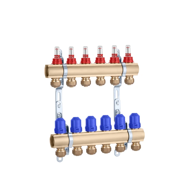 Колектор ROSSINI з витратомірами, термоклапанами і евроконусами 1"x3/4" 10 виходів