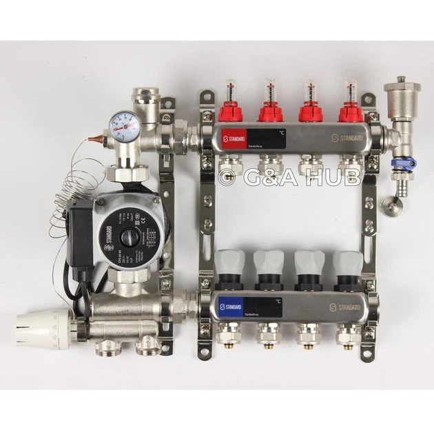Колектор Standard 1" - 3/4" на 4 виходи та змішувальна група з насосом