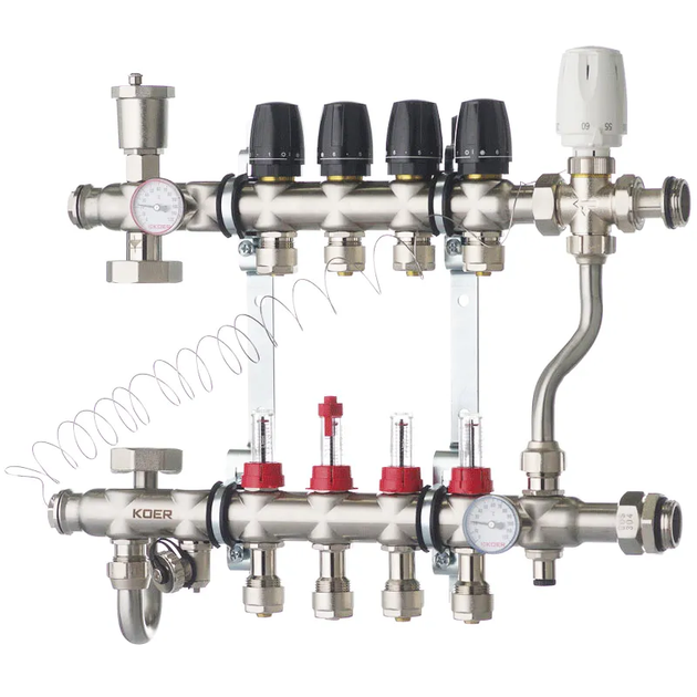 Колектор із вбудованим змішувальним вузлом KOER KR.S1013-4 1"х4 SUS304 та євроконусами 3/4-16 (KR2947)