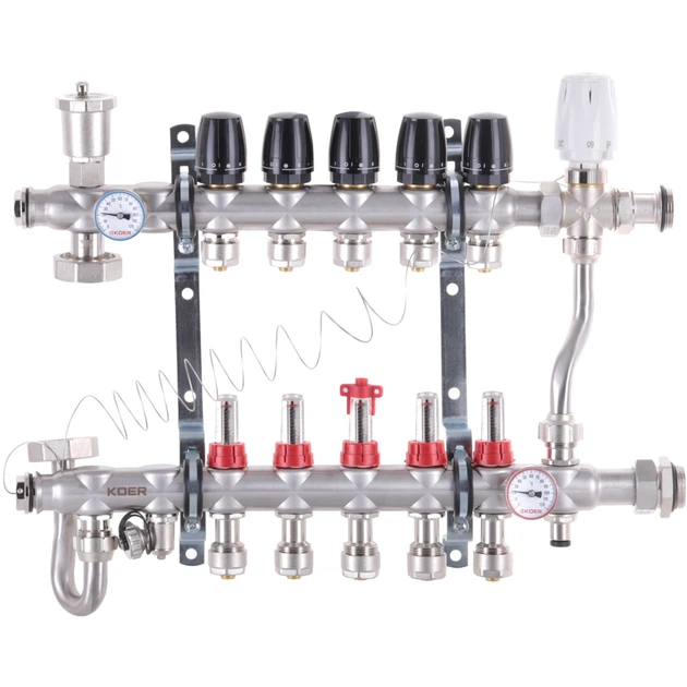 Колектор із вбудованим змішувальним вузлом KOER KR.S1013-5 1"х5 SUS304 та євроконусами 3/4-16 (KR2948)