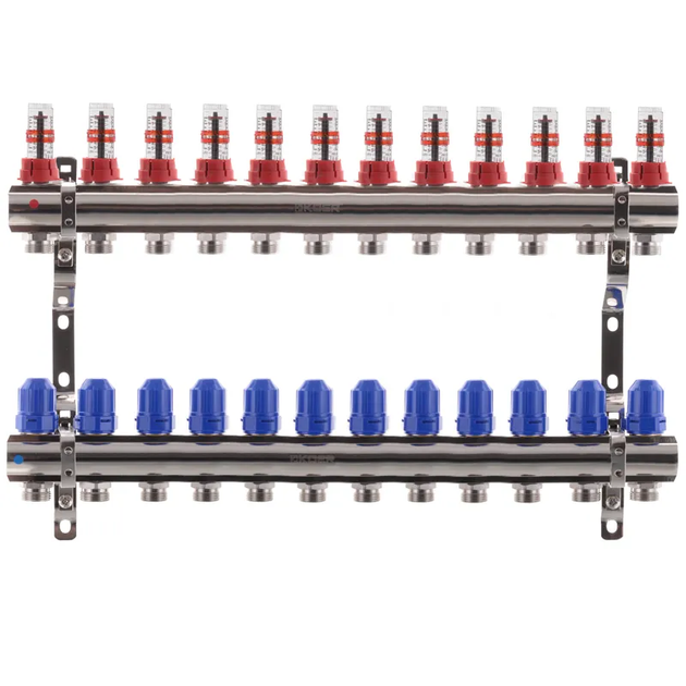 Колектор Koer 12 контурів з витратомірами, для теплої підлоги.