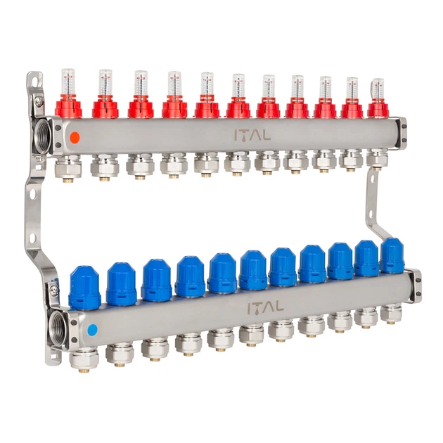 Колектор для теплої підлоги ITAL 12 контурів з витратомірами 1"/3/4" HC1-12