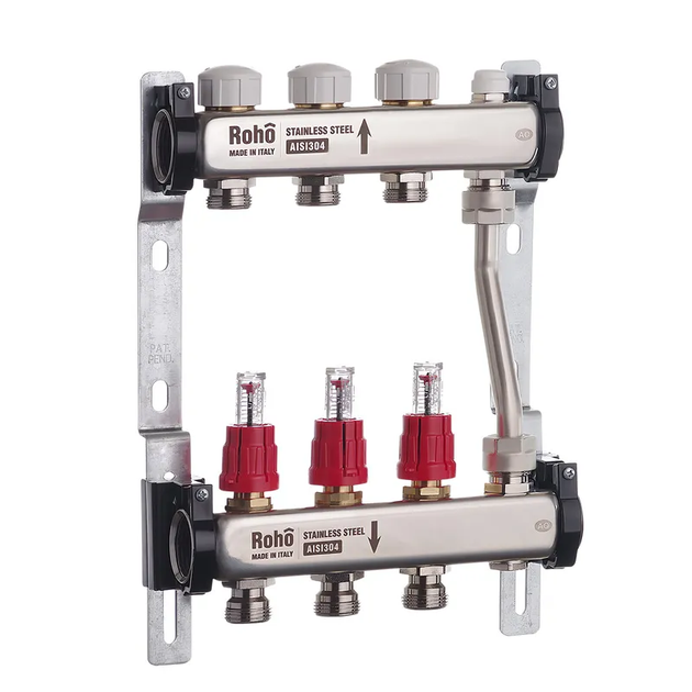 Колектор з витратомірами та термостатичними клапанами з байпасом Roho R814-03 - 1"х 3 виходи (RO0046)