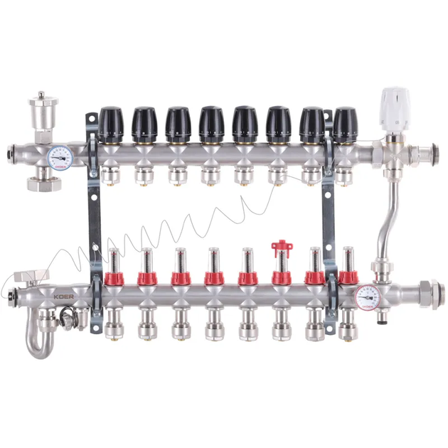 Коллектор со встроенным смесит. узлом Koer KR.S1013-8 1"х8 SUS304 и евроконусами 3/4-16 (KR2951)