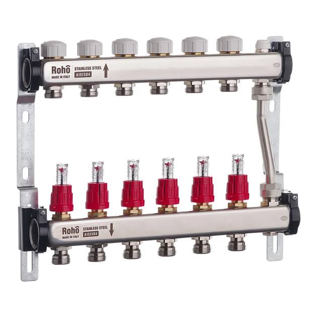 Колектор з витратомірами та термостатичними клапанами з байпасом Roho R814-06 - 1"х 6 виходів (RO0049)