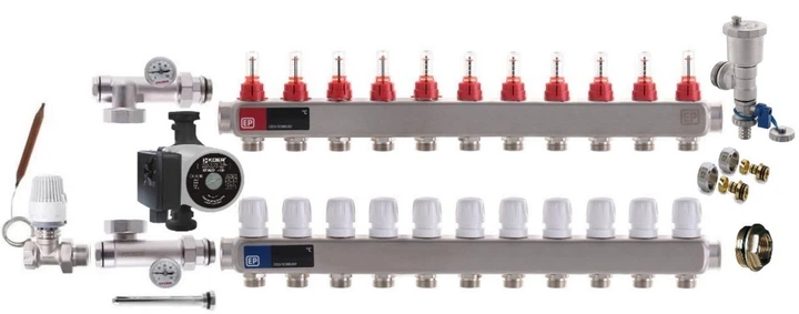 Колектор для теплої підлоги "Europroduct" 11 контурів прямий комплект