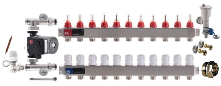 Колектор Standard 1" - 3/4" на 10 виходів та змішувальна група з насосом