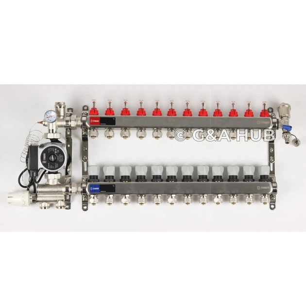 Колектор Standard 1" - 3/4" на 12 виходів та змішувальна група з насосом