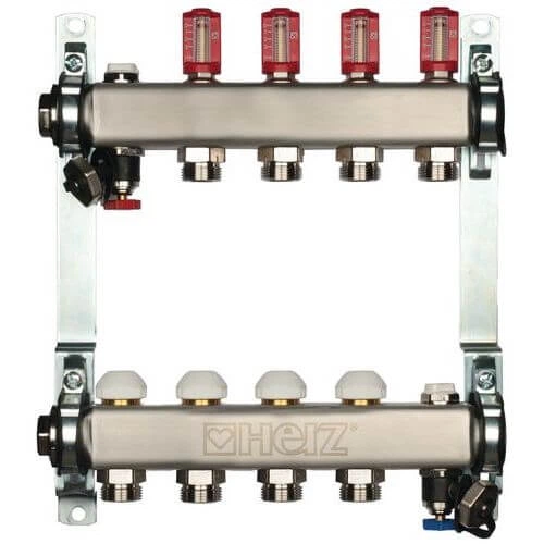 Колектор для опалювальних контурів Herz DN25 на 7 виходів з витратомірами термостатом (1863207)