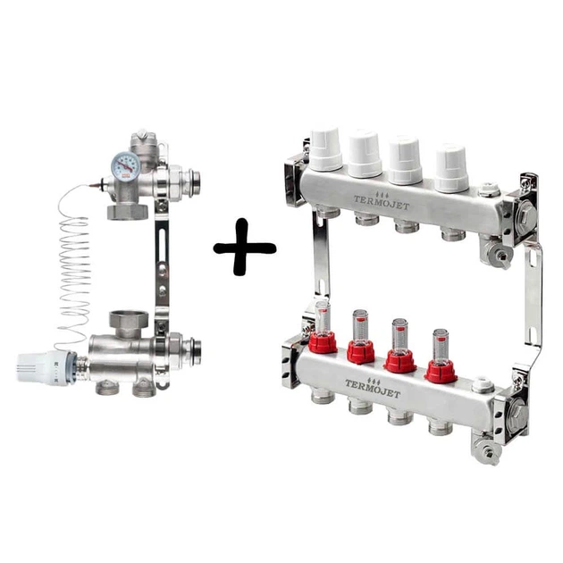 Вузол теплої підлоги в зборі без насоса Termojet 1x3/4 на 4 виходи з витратомірами