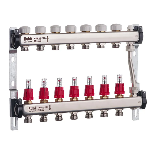 Колектор з витратомірами та термостатичними клапанами з байпасом Roho R814-07 - 1"х 7 вих. (RO0050)