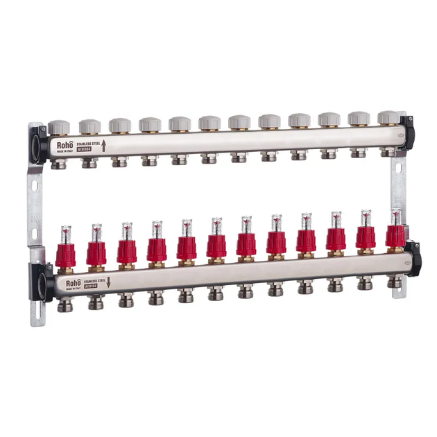 Коллектор с расходомером и термостатическими клапанами Roho R804-12 - 1"х 12 вых. (RO0044)