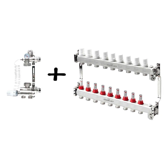Вузол теплої підлоги в зборі без насоса Termojet 1x3/4 на 9 виходів з витратомірами
