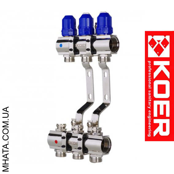 Колектор для опалення KOER на 3 виходи без витратомірів, опалення (без євроконусів) (Чехія)