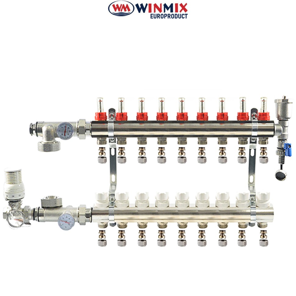 Коллекторный узел в сборе для системы "ТЕПЛЫЙ ПОЛ" WInmix на 9 выходов (балка латунь)
