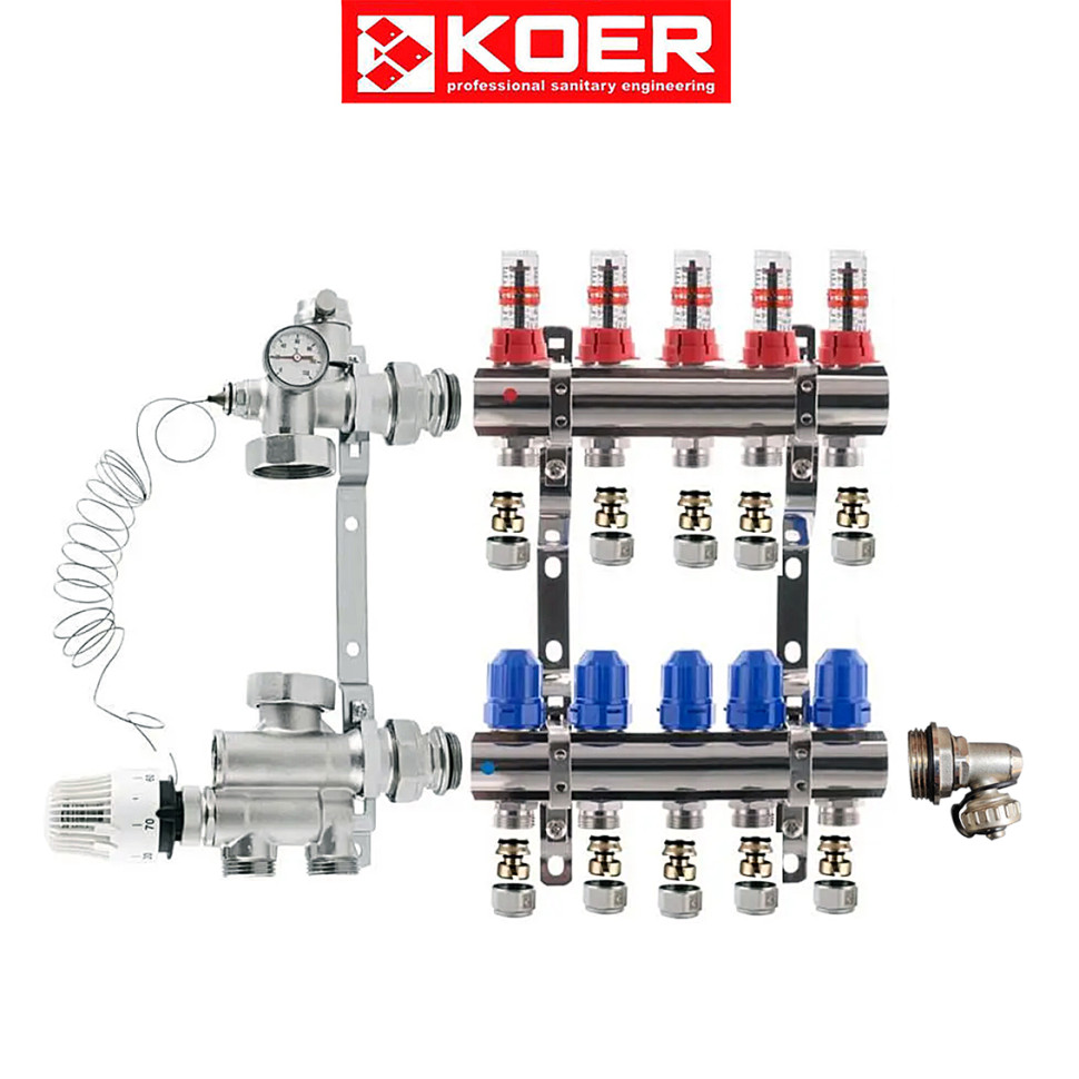 Все продукция торговой марки "KOER" производится на новейшем оборудовании Чешского завода "Dieffenbacher-cz". Приобретая товар торговой марки "КОЕР" Чехия, вы получите высокое качество по приемлемой цене. Коллекторы для теплого пола – основной механизм распределения и контроля параметров теплоносителя в системе. От того, насколько качественно и точно работает коллектор, а также,