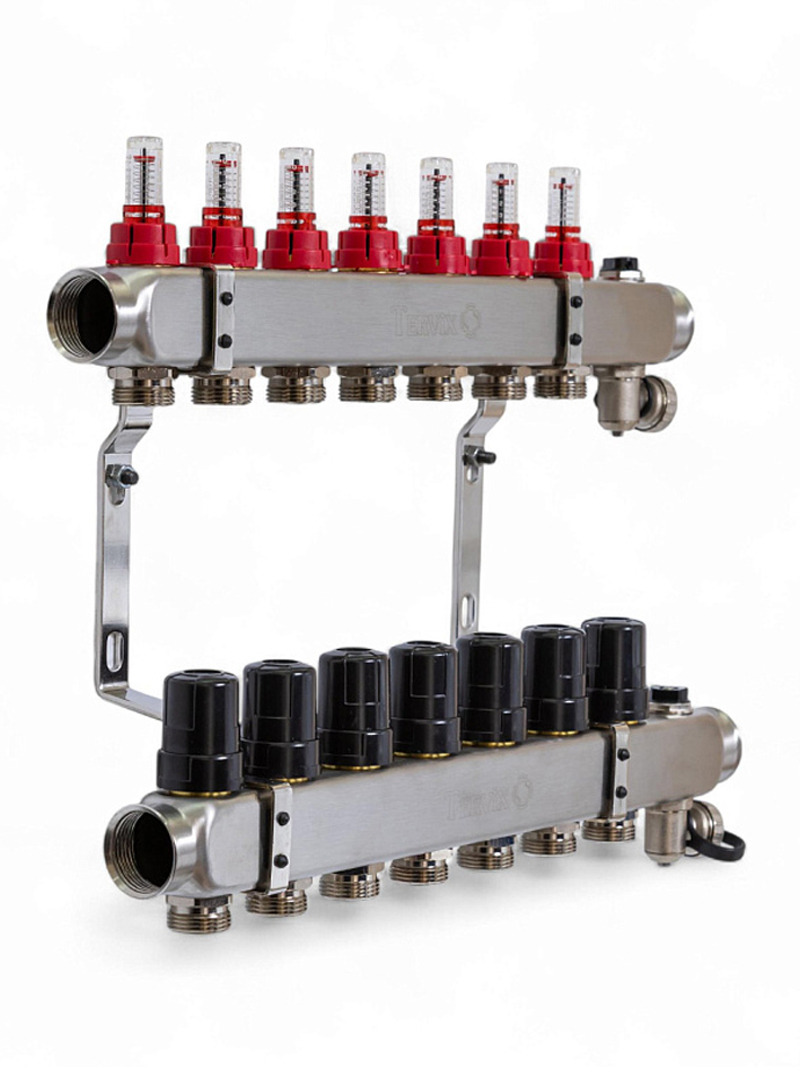 Коллектор TERVIX Pro Line на 7 контуров, с расходомерами, краном Маевского и сливным краном 501207