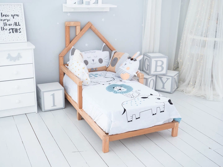 Дитяче ліжко будиночок Монтессорі BUSY WOOD на ніжках Модель 3 140х70 см натуральне дерево