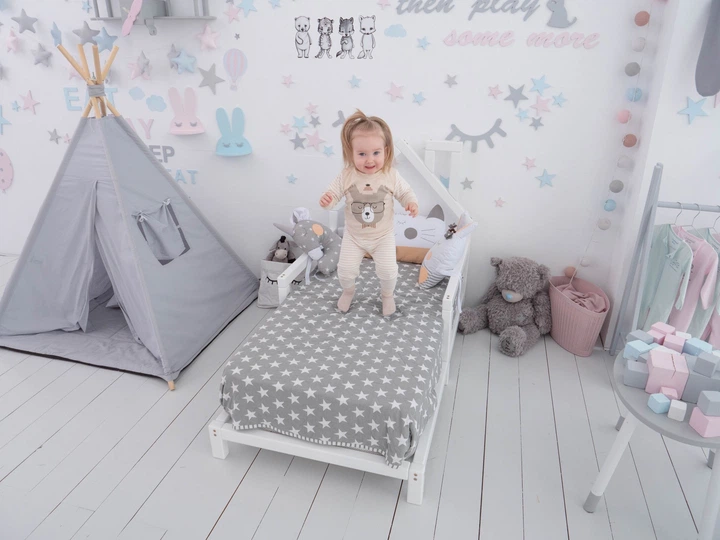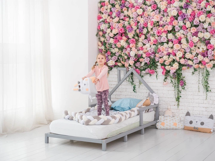 Дитяче ліжко будиночок Монтессорі BUSY WOOD на ніжках Модель 3 140х90 см сірий