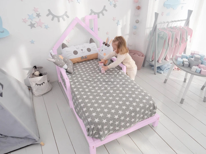 Дитяче ліжко будиночок Монтессорі BUSY WOOD на ніжках Модель 3, 160х80 см рожеве