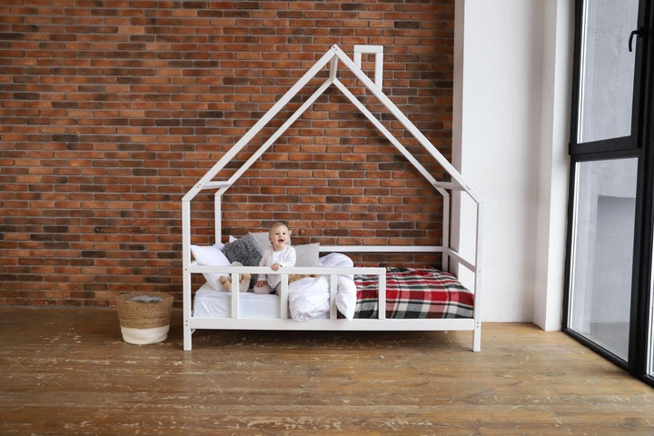 Дитяче ліжко будиночок Монтессорі BUSY WOOD на ніжках Модель 2 120х60 см біле