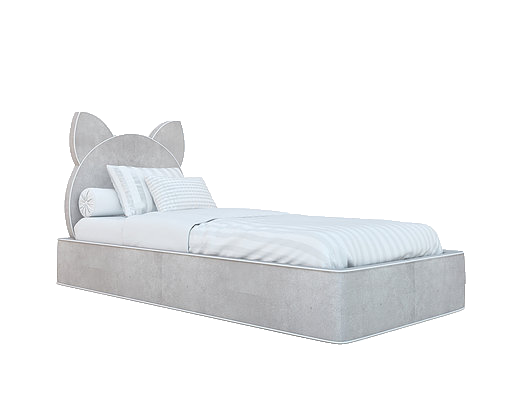 Дитяче ліжко м'яке з вушками кошеня MeBelle CAT 90х190 односпальне, світло-сірий велюр