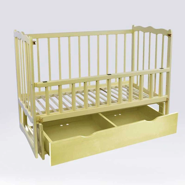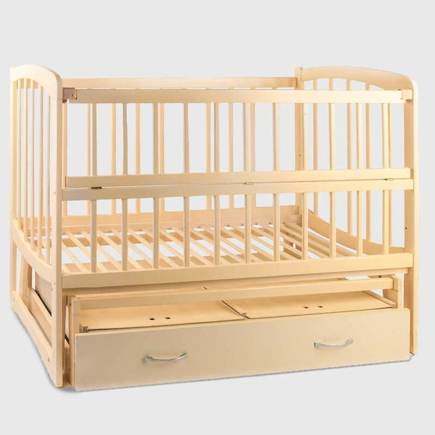 Ліжечко дерев'яна маятник з шухлядою і відкидним бортом "Сон" (слонова кістка) 78133