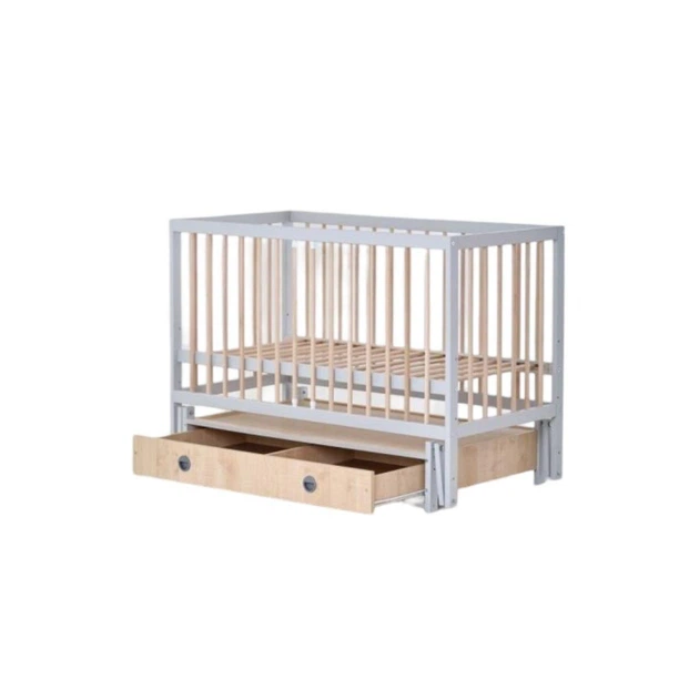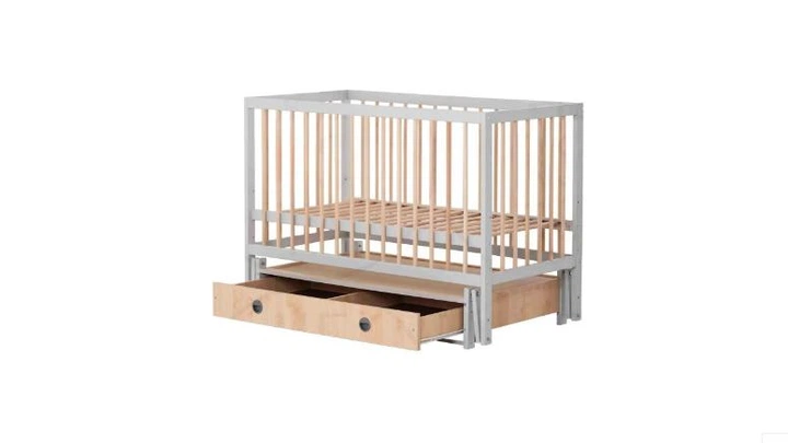 Дитяче ліжечко "Казка" з висувною паличкою, шарнірним механізмом і шухлядою, сірий з натуральною паличкою