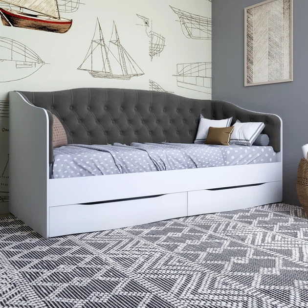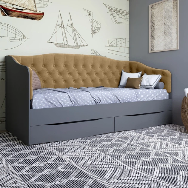 Ліжко дитяче односпальне LION Л-9 з м'якою спинкою і висувними шухлядами 190x90 см Антрацит/Лілі-02 (LION-041467)