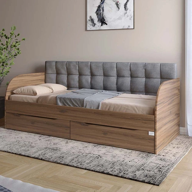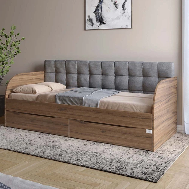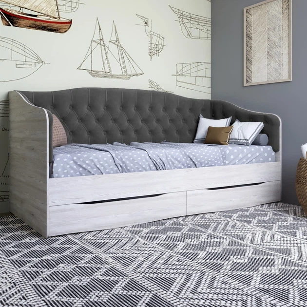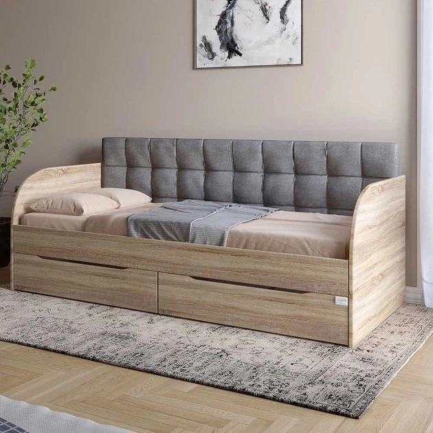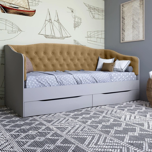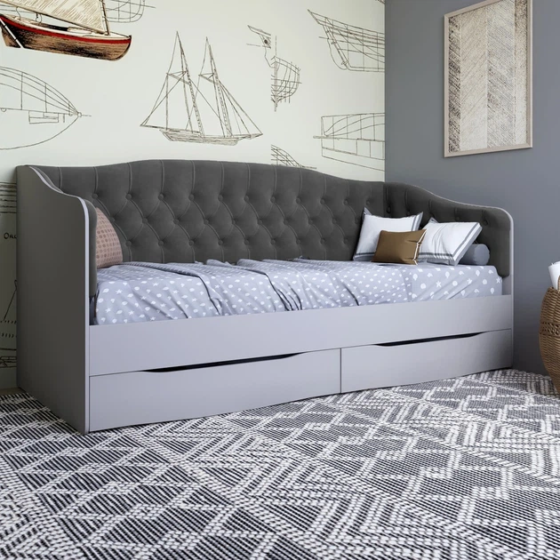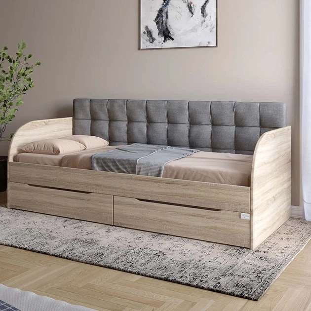 Ліжко дитяче односпальне LION Л-9 з м'якою спинкою і висувними шухлядами 190x90 см Самоа Димчастий/Лілі-95 (LION-041496)