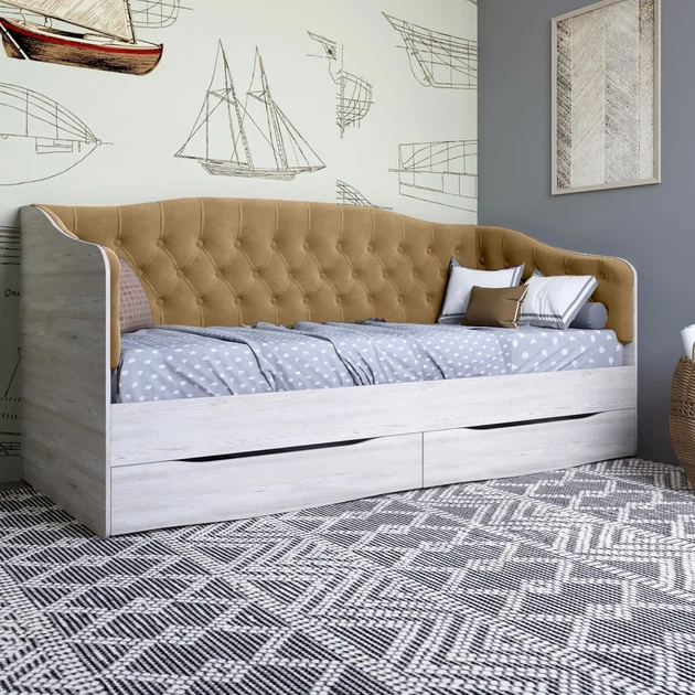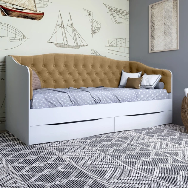 Ліжко дитяче односпальне LION Л-9 з м'якою спинкою і висувними шухлядами 190x90 см Кашемір/Лілі-95 (LION-041493)