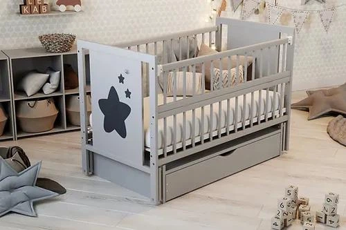 Дитяче ліжечко для новонародженої дитини з маятником і бортиком ліжко Дубок Зірочка з маятниковим механізмом з шухлядою бук