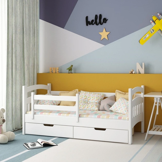Ліжко з натурального дерева сосна Джой 80x200 білий Stemma з ящиками