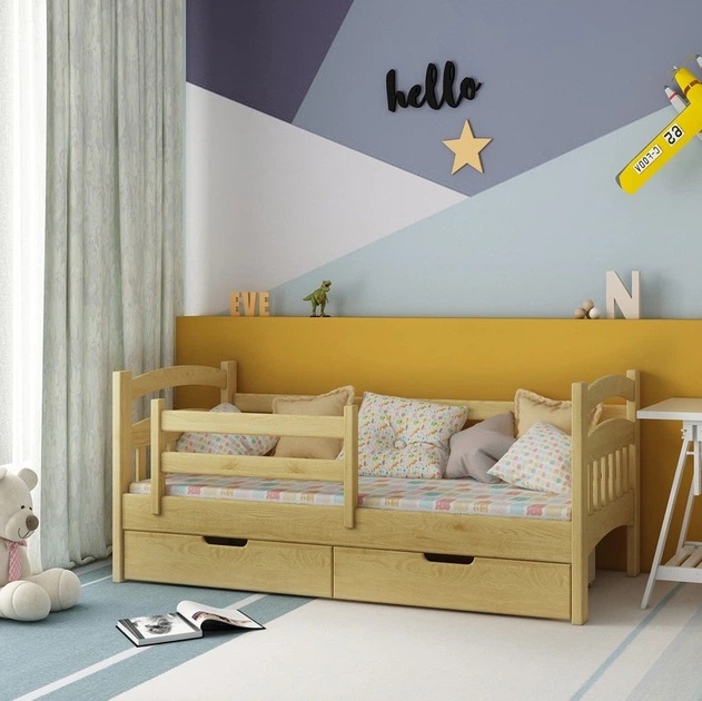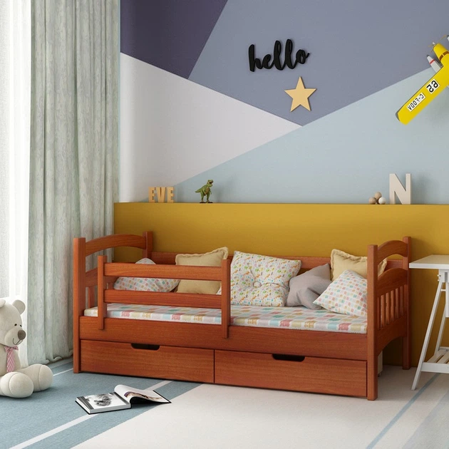 Ліжко з натурального дерева сосна Джой 80x200 яблуня Stemma з ящиками