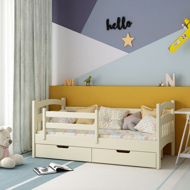 Ліжко з натурального дерева сосна Джой 90x200 айворі Stemma з ящиками
